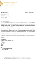 On behalf of Saifee Burhani Upliftment Trust, I would like to take this opportunity to express gratitude to you and your team for the hard work, support and dedication exhibited towards the completion of “Muffadal Shopping Arcade”.